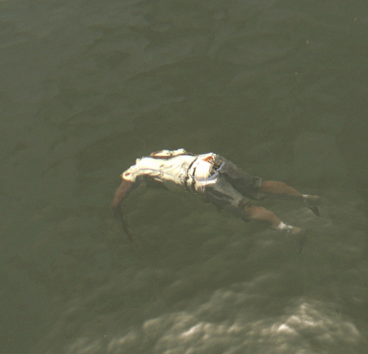 По мере приближения этой фигуры мне всё больше казалось, что это не человек. Не знаю, может это шутки разума или стресс, но я видела, что приближается что то похожее на человека, не более. Дело в том, что оно было голое и мне мельком удалось его рассмотреть. Оно вроде было мужского пола, что то свисало у него между ног, всё тело серого цвета, а голова была скрыта какой то дымкой. Больше я не выдержала. Безумный страх одолел и заставил сесть в воду, сжаться самой и сжать глаза как можно сильнее. Оставалось лишь ждать, что будет дальше. Через пару секунд его шаги были отчётливо слышны, и с каждой секундой они становились всё громче и громче. Затем резкий всплеск воды, похоже он вступил в воду и за ним явился протяжный свист. Затем наступила тишина и ничего не происходило, совсем ничего. Всё оставшееся время я оставалась в воде, пока не пришли вы.