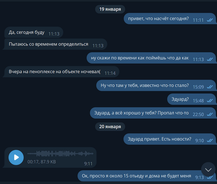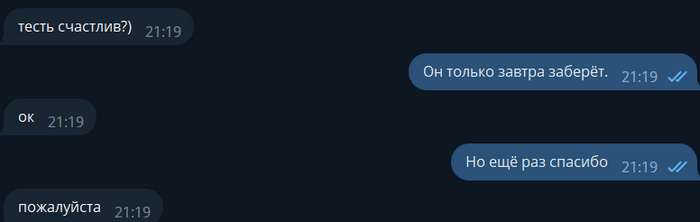 Дальше писать не буду, там всё стандартно - через час точно будут. На данный момент сообщения читает - не отвечает.