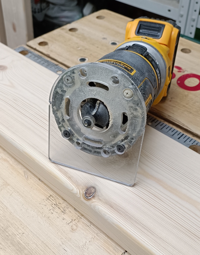Первым делом со всего поснимал фаску радиусной фрезой на 10. Как раз ко дню рождения сделал себе подарок и прикупил аккумуляторный кромочный фрезер.