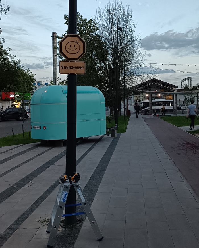 В общем сделал и сделал. Прохожу я это место почти каждый день, всё ждал что сломают или демонтируют, но ничего такого не происходило. В один день, спустя, наверное, недели три после установки в одной из местных групп в ВК, кто-то выложил фото моего знака с подписью "Милый знак появился возле Понырей". Кто-то в комментах начал гнать дичь на тему "Властям деньги девать некуда, лучше бы [вставить действие] сделали". Но был один коммент, а именно "Надо больше таких знаков, как и знаков "улыбнись. Вы видели какая серая масса едет в 6 утра в Москву с Воронка в электричке.", который меня стриггерил и я подумал, а ведь это мысль.