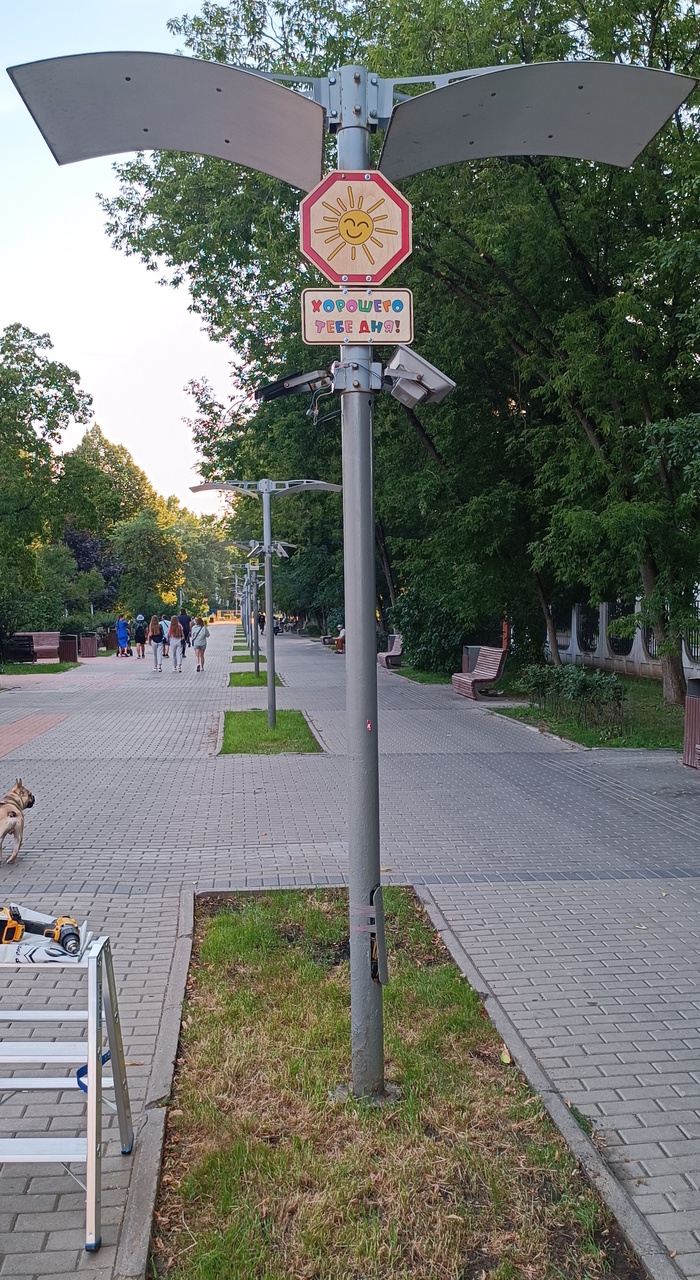 Разместил я его в прогулочной зоне одной из центральных улиц города. Хотелось чуть пониже, но фонари освещения не позволяют, а если ниже них, то слишком низко, боюсь поломают.