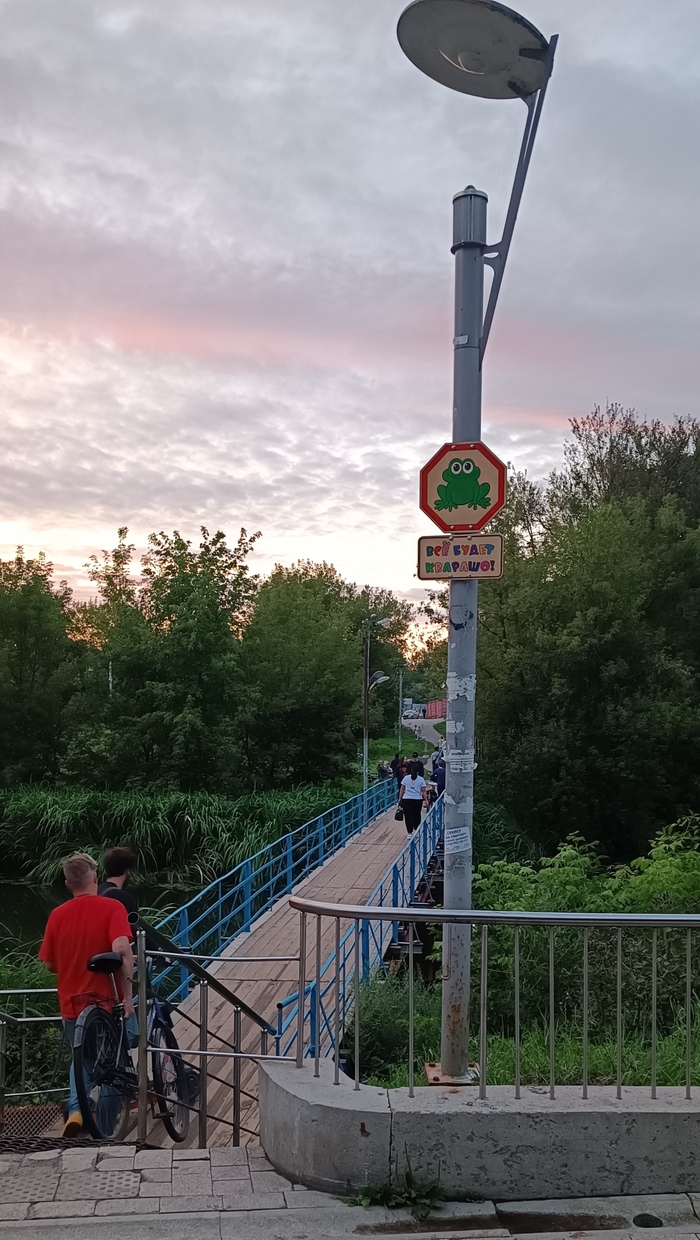 И установил его, конечно же у местной нашей речки. Там много людей как раз вечером с работы идут и тоже смурные, зачастую.