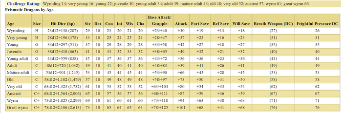 Самым могущественным существом, перечисленным в «Справочнике по эпическому уровню» является призматический дракон, который жил веками и считается великим змеем.