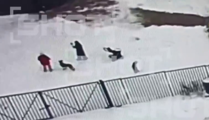 А в действительности беременяшка и яжемать зацепились рогами, потому что они беременяшка и яжемать. На видео четко видно, как беременная барышня с собакой намеренно подходит и следуют за барышней с ребенком. В свою очередь барышня с ребенком, с целью ограждения своего чада от собаки, входит в конфронтацию с первой, в следствии чего одаривает беременную увесистыми оплеухами детской пластиковой лопаткой синего цвета.