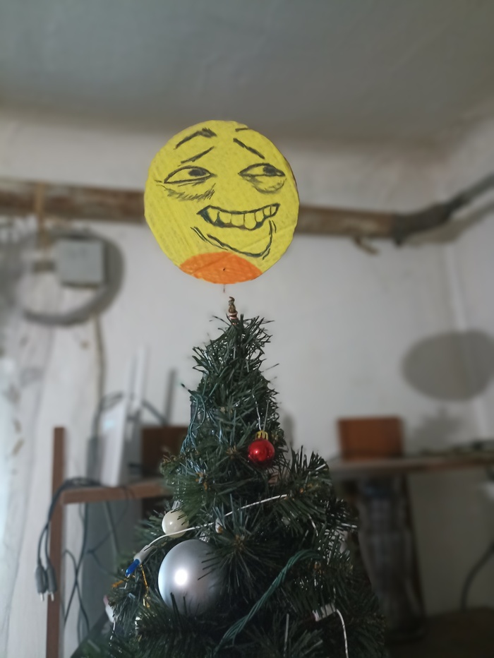 Странный год. Вроде и хорошо всё, но как-то... Устала. Ребенок родился в марте, поступила в колледж, переболели ковидом всей семьей, лысею потихонечку после болезни. Села на унитаз и по пояснице как лопатой вдарили. Выявили лордоз и всякое такое остеохондрозное. Дедушка с бабушкой заболели ковидом, бабуля в больнице с пневмонией лежит сейчас. До 30го декабря надо сдать кипу самостоятельных работ и контрольных, сижу, пишу по ночам, потому что днем не дает заниматься малыш. Вымоталась. Настроения праздничного нет совсем. Решила нарядить ёлочку. Нарядила. Полюбовалась. Отошла, возвращаюсь, а она мое нынешнее состояние отобразила. Похоже, придется орущую звезду рисовать по традиции.