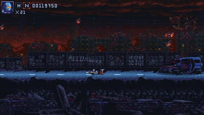 Я пролетел эту игру на одном дыхании. Мне понравилась её динамичность и кровожадность. С одной стороны, будто вернулся в детство. Ведь Iron Meat до боли напоминает старую-добрую Contra на Dendy. И визуально, и по механикам. С другой — Железное мясо достаточно кровавое, в отличие от прародителя. И больше напоминает в этом плане DOOM с его демонами, которых весело разваливать в красочное месиво из всего, что под руку попадётся.