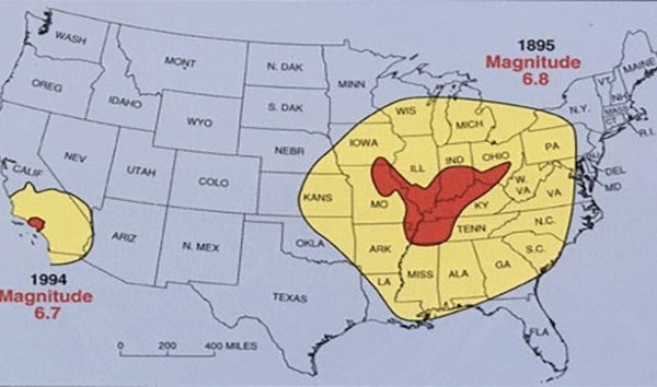 В результате серии сильнейших землетрясений в истории Соединённых Штатов, произошедших в округе Нью-Мадрид, штат Миссури, течение реки Миссисипи повернулось вспять.