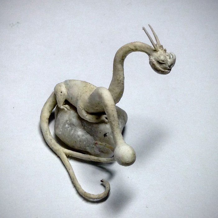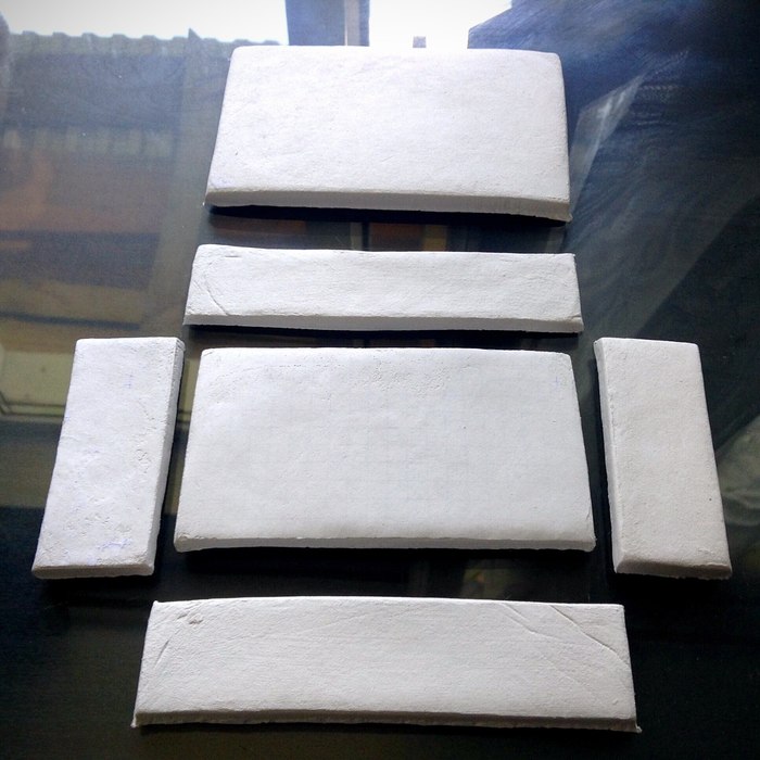 Когда масса станет твёрдой, берём глину и вылепливаем центральную конструкцию (подиум с лесенками).