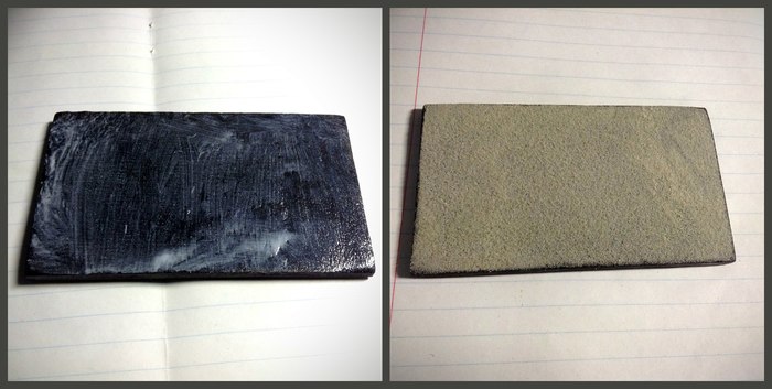 Когда песок застынет, можно будет раскрасить дорожку и ступеньки. Для дна "рва" вазводим полимерную глину водой до состояния "пюре". Добавляем акриловую краску нужного цвета, и готовой смесью замазываем дно так, чтобы там не осталось отверстий и трещин между камушками дренажа (иначе, эпоксидная смола найдёт эти отверстия и утечёт через них внутрь).