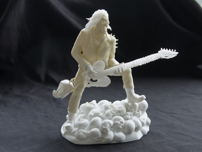Душа старого металлюги жаждала праздника, и я допилил композицию. Для печати она конечно получилась немного сложной для новичков, на фотополимернике печаталась вообще без проблем. Немного танцев с поддержками, капелька клея и все ок.