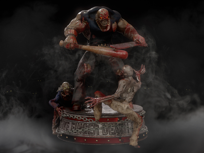 Один из моих заказчиков, бородатый мужик в косухе любящий игрушки (владелец маленького рокмагазина в Бирмингеме), скинул мне целый список брутальных маскотов, и следующий мой выбор пал на FFDP и мощнейшего Knucklehead. Здесь я конечно упоролся с ним на отлично, хотелось динамики и сюжета