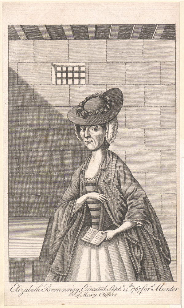 Элизабет была признана виновной в убийстве Мэри Клиффорд и приговорена к смерти.14 сентября 1767 года Элизабет Браунригг была повешена в Тайберне перед огромной толпой, которая освистывала и забрасывала её камнями по пути к эшафоту. Впоследствии её тело доставили в Хирургический зал и передали на анатомирование. После этого её скелет был выставлен в нише напротив первой двери в Хирургическом театре.