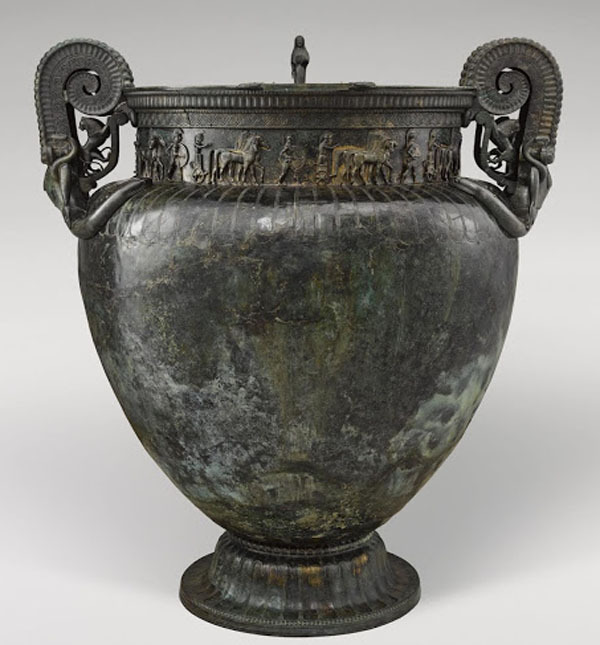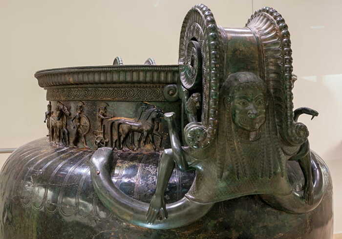 В мире древних артефактов мало, что может сравниться по масштабам с кратером Викс - огромной бронзовой вазой, считающейся самой большой сохранившейся металлической посудиной из античности. Этот шедевр греческого ремесла, датируемый примерно 530–500 годами до н.э. был обнаружен в 1953 году во Франции. Размеры поражают: высота кратера(посудина для смешивания вина и воды) 1,64 метра, диаметр 1.27 метра и вес 208 кг, он мог вместить 1100 литров винного и водического.