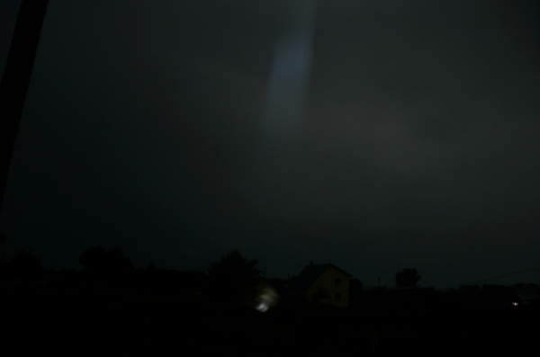 Снимая на выдержке удалось заснять странный луч исходивший с неба.