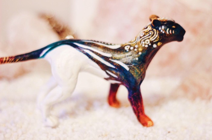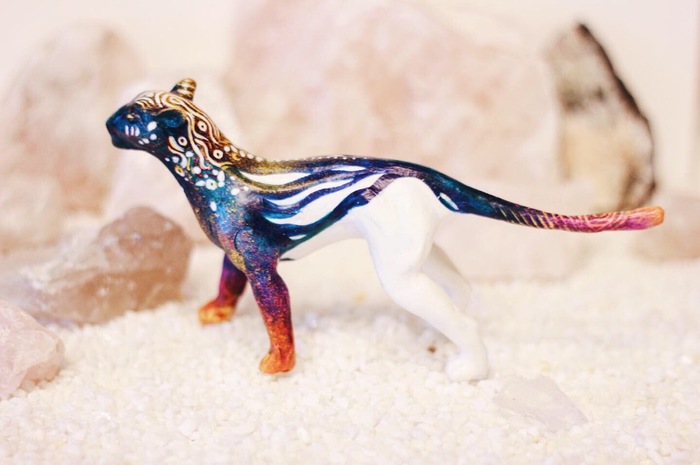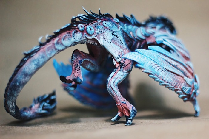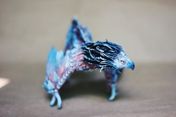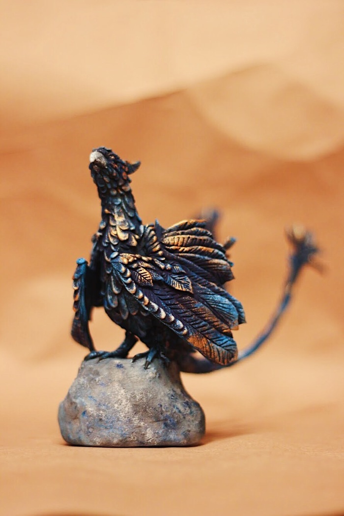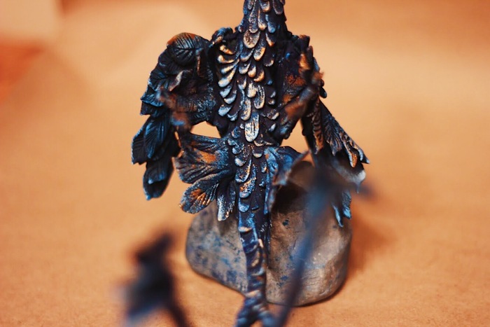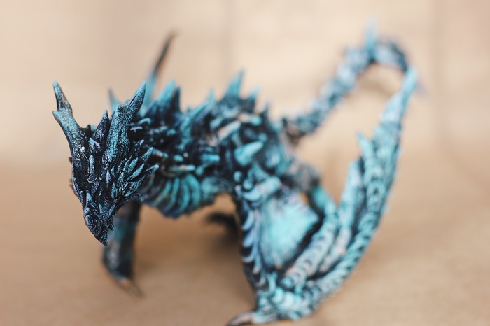 Относительно цветовой гаммы вдохновлялась концепт-артами, где как раз был сине-золотой вариант. Фигурка сделана из бархатного пластика, фольги и покрашена акриловыми красками. Получился немного полноватым, поэтому будем считать, что он только что побывал в гостях у бабулиты. с: