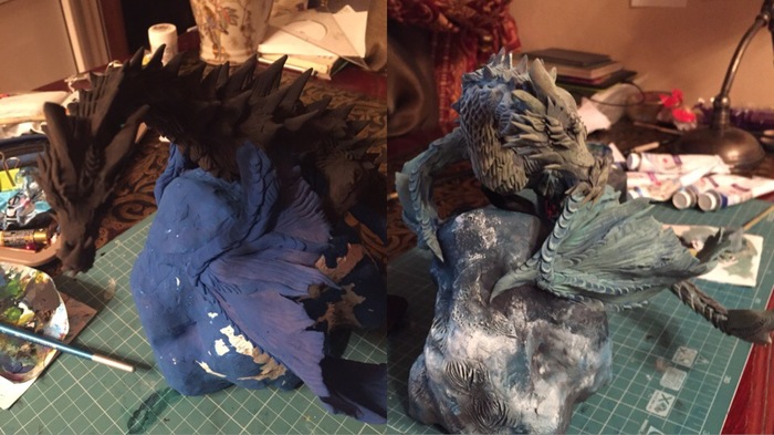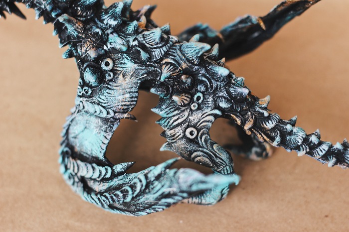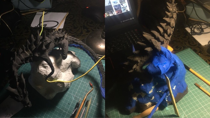 И немного процесса создания! Каркас дракона: проволока с фольгой. Все остальное - бархатный пластик. Для горы использовала пеноплекс и пластику, поэтому статуэтка получилась очень легкой. Размеры: 20 см в высоту, 22 в ширину и 20 в длину.