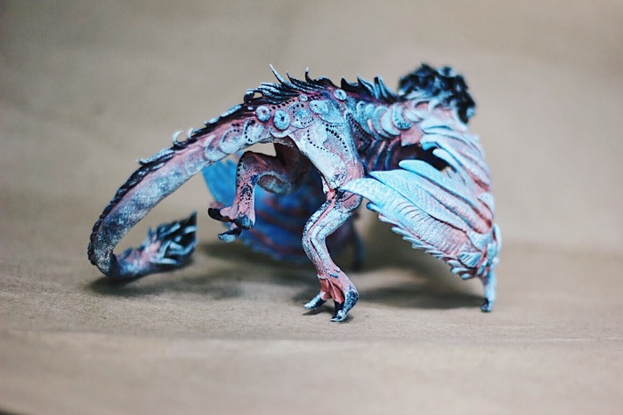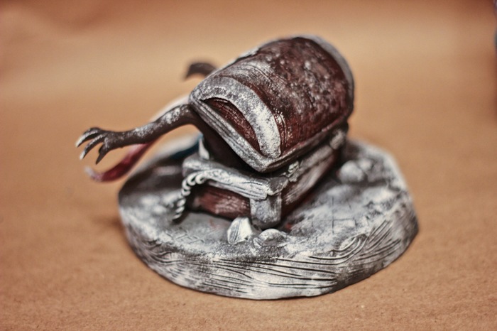 2. Постепенно начинает обрастать мускулатурой и появляется кусало. Оставляю в туловище отверстия, через которые будет проникать свет.