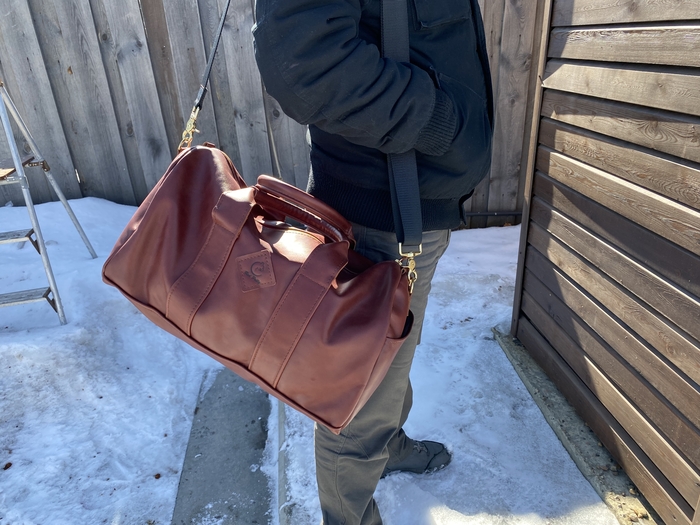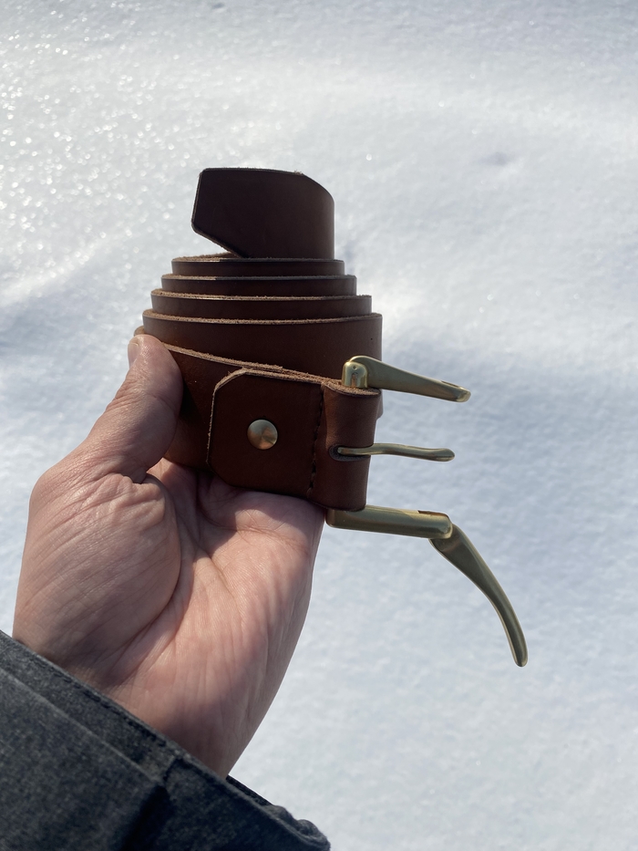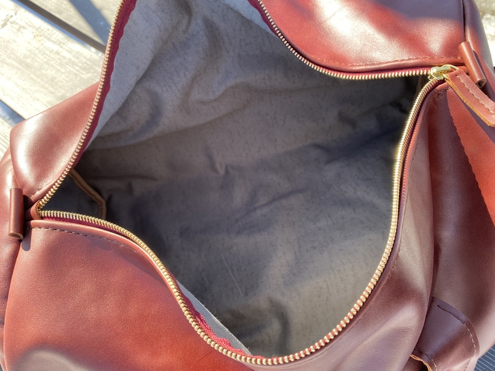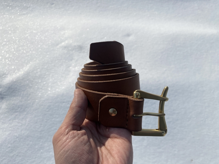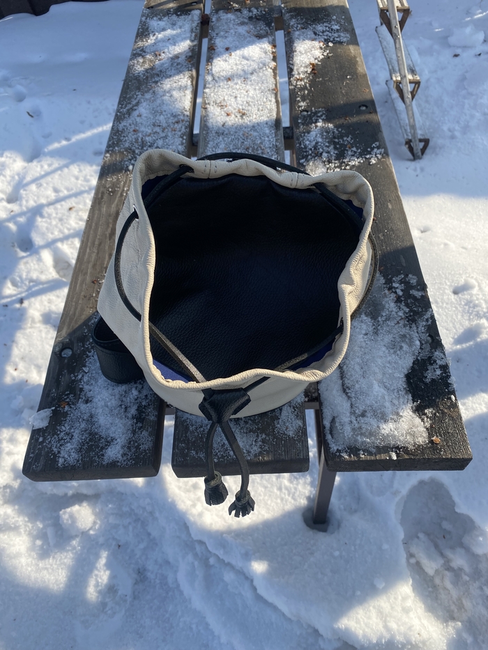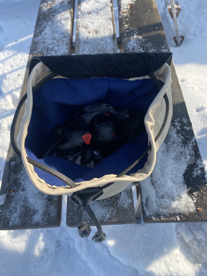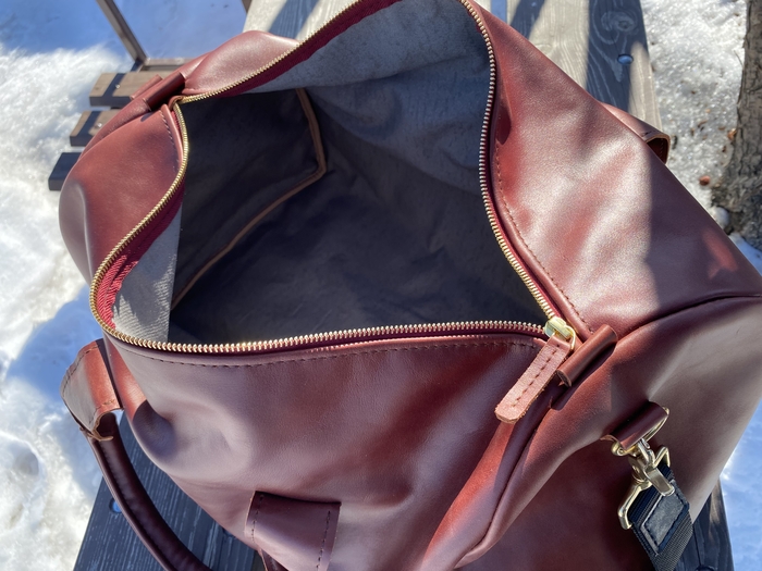 Основная задача была сделать из того, что есть, с минимальными дополнительными тратами. А это последний кусок кожи от дивана, пошёл на основу. Ремень из новенькой шкуры. Молнии и бегунки YKK. Подкладка из какого-то плотного и тактильно приятного материала. Фурнитура ремня от старой сумки Dr. Koffer. Докупал только люверсы.