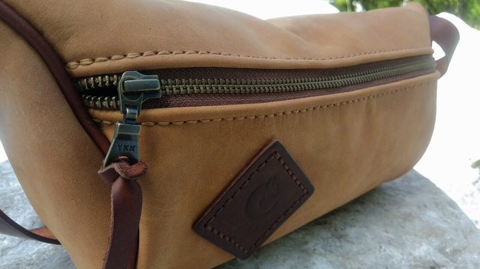 Основа крезихорс 1.4 мм, ремень юфть 2.5 мм, фурнитура латунь, состарил парами аммиака, молния YYK.