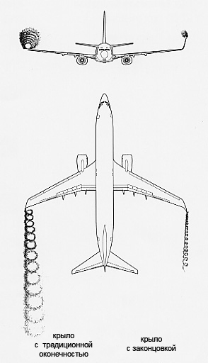 На фото выше хорошо показано, как это работает (слева край крыла без законцовки, справа с законцовкой).