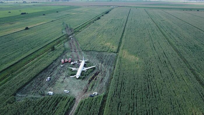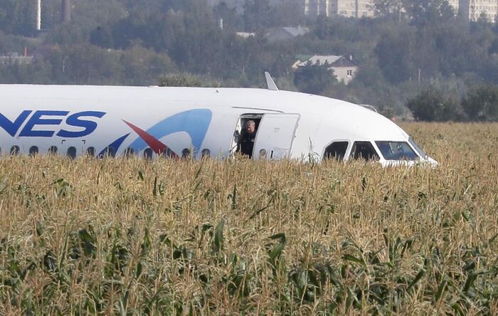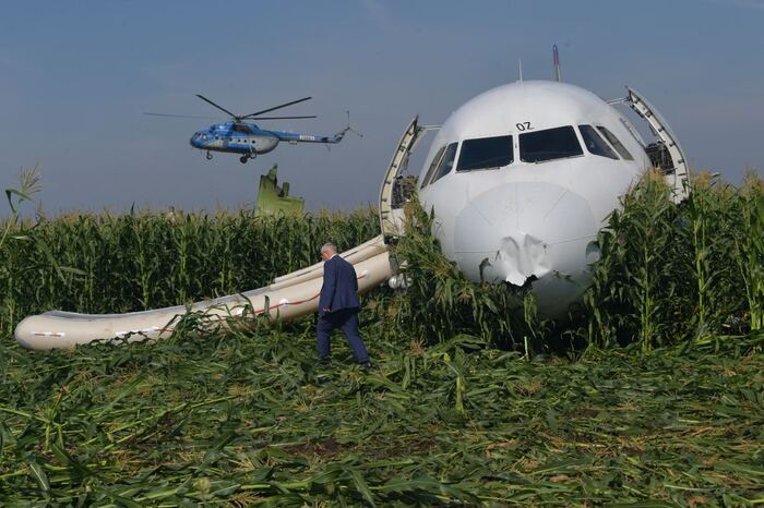 Пилот выпрыгнул (или выпал - не понятно) из самолёта, расстроившись из-за неудачной посадки