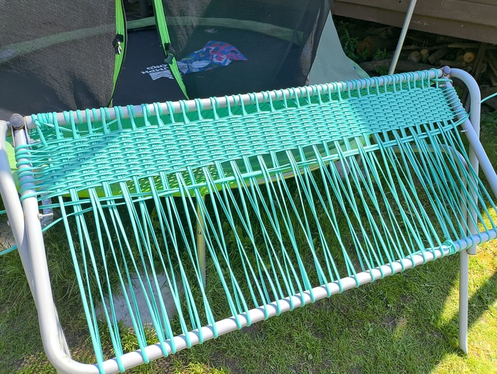 Хочу поделиться немного своим трудом) Началось с того, что на даче была основа для качелей, на которых прорвалось дно. Да и спинка уже была готова порваться.Рвали уже сами. Но да ладно. Жена подкинула идею и заказала 200 м искусственного ротанга. И за выходные мы сделали дно для качелей. Момент старта не заснял.