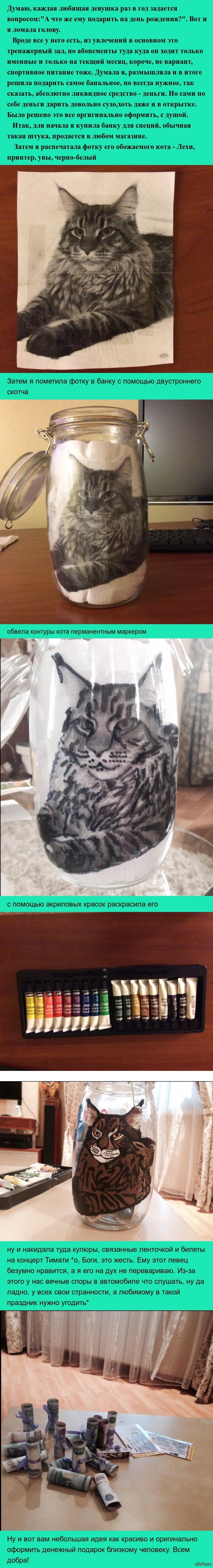 Homecatfat Оформление подарка на день рождения 10 лет назад Показать полностью 1 [моё] Кот Банка Длиннопост Подарки День рождения Деньги Акрил