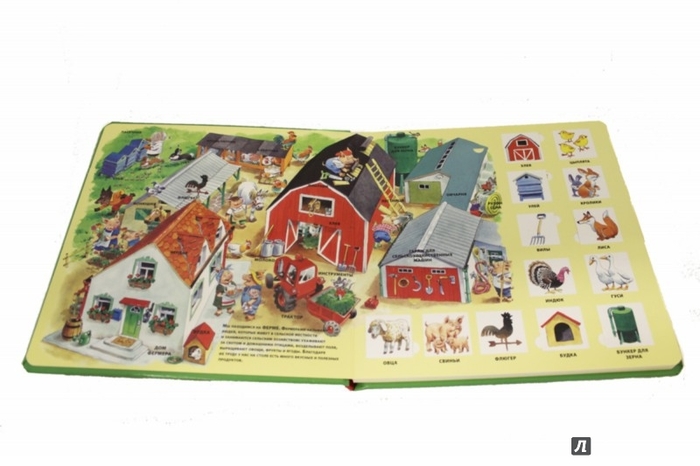 1) "На Ферме". Эта наша первая из этой серии. Сын не выпускал, открывал окошки, сам рассказывал, что там нарисовано. Мы играли в игру "найди в книге зайца (например), сколько зайцев на этой странице?". Придумывали с ним сценки, сказки, истории. Можно играючи рассказать ребенку про сельское хозяйство, агрокультуры, технологии. Да что и говорить...я и сама залипла над этой книгой, пока все окошечки не открыла)))