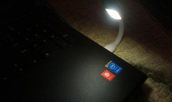 В тёмной комнате отлично освещает клавиатуру ноубука и пространство рядом.