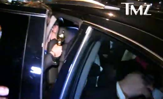 На кадрах видно, что в ресторане Лео постоянно передают бутылки - очевидно, актер старательно обмывал награду (т.с. чтоб не последняя). Бутылку же ему подали и в салон автомобиля, когда звезда покидала вечеринку. И только тогда кто-то из присутствующих заметил, что у ДиКаприо с собой нет статуэтки "Оскар". Но приз быстро отыскали в ресторане и вернули лауреату. Впрочем, ему было не до статуэтки...