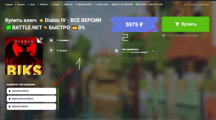 Нас перенесет на отдельную вкладку с выбором версии издания и региона будущего аккаунта battle.net (данный способ определения типа контента отличается от других маркетплейсов, неплохо)