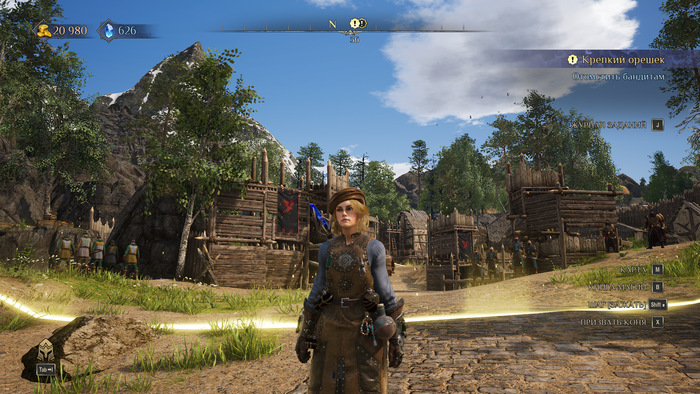 Визуал. На самом деле, картинка довольно хорошая, потому что после пролога попадаешь на большую карту, и там есть на что посмотреть - и замки (с кучей переиспользованных ассетов), и башня магов, и какие-то руины, деревни, всё такое. Мне очень напомнило второго Ведьмака, если честно, но, если учесть, что он вышел 10 лет назад, то это не делает чести для KB2. Поселения неплохо прорисованы, наполненные чем-то, какие-то мелкие детали, птицы разлетаются, когда возле них проходишь - это прикольно, да. А вот стиля нету. Юниты выглядят будто с 5-6 различных игр, скорее всего и созданы совершенно разными художниками, NPC также собраны из небольшого набора лиц / причесок / одежды, поэтому уже через несколько часов видишь примерно все варианты, ну может дворфы немного отличаются, как и нежить. А если сверху навесить еще и технические проблемы (на рекомендованной конфигурации причем, хоть здесь не загнались) как баги с текстурами, непрогрузки, а также то, что дальность прорисовки ну никак не регулируется - то на открытом пространстве есть серьезные проблемы с быстродействием, времами FPS проседал до 30-40 кадров, и даже если все настройки скрутить в минимум, то при взгляде на ту же башню магов (что за добрые полкилометра от столицы) - ощущаются минимальные фризы. Нет, здесь еще шлифовать и шлифовать. Поэтому только 5/10, хотя в целом картинка и хорошая. Даже то, что одетый шмот отображается на персонаже - это уже плюс. Но только как для игры 10-летней давности. О прорисовке каждого юнита в сквадах скажу позже, потому что это нифига не плюс.