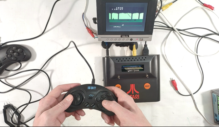 Стандарт подключения периферии у Arati был настолько прост и функционален, что по нему работали геймпады как на SEGA GENESIS/MD, так и на ряде домашних компьютеров, например, на том же Commodore 64. Поэтому вопрос с поиском или изготовлением оригинальных джойстиков не стоял, китайский геймпад от SEGA MD будет отлично работать. Но... после подключения вылезла следующая проблема - они были перепутаны местами.... Как оказалось, это еще один косяк схемы... При этом, она лежит в репозитории самого большого западного Atari-сообщества! Что это такое и почему никто не исправит это недоразумение мне вообще не ясно. К слову, эта схема датирована 2000 годом! То есть 20 лет все просто клали болт на такие "мелкие недоразумения". Написал письмо в поддержку сайта AtariAge, но ответа не последовало... Ладно, черт с ними, нам надо двигаться дальше.