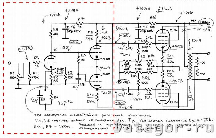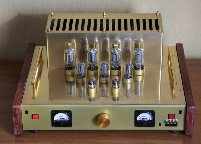 В основе преампа лампы 12AT7 и 12AU7, работающие на низком анодном питании в 24В. Звучание регулируется потенциометрами отвечающими за параметры GAIN, TONE и VOLUME. Другими словами регулируется начальное искажение лампы 12AT7 и на выходе подбирается уровень и частотка на лампе 12AU7. Лампы типа 12XX7 имеют отличие от наших Советских аналогов возможностью организации накала как от 6,3В, так и от 12,6В в соответствующем последовательном, или параллельном включении накальных цепей.