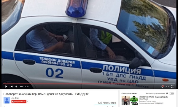 Видео передачи взятки за нарушение пдд: https://www.youtube.com/watch?v=mHGfHT-ITH4