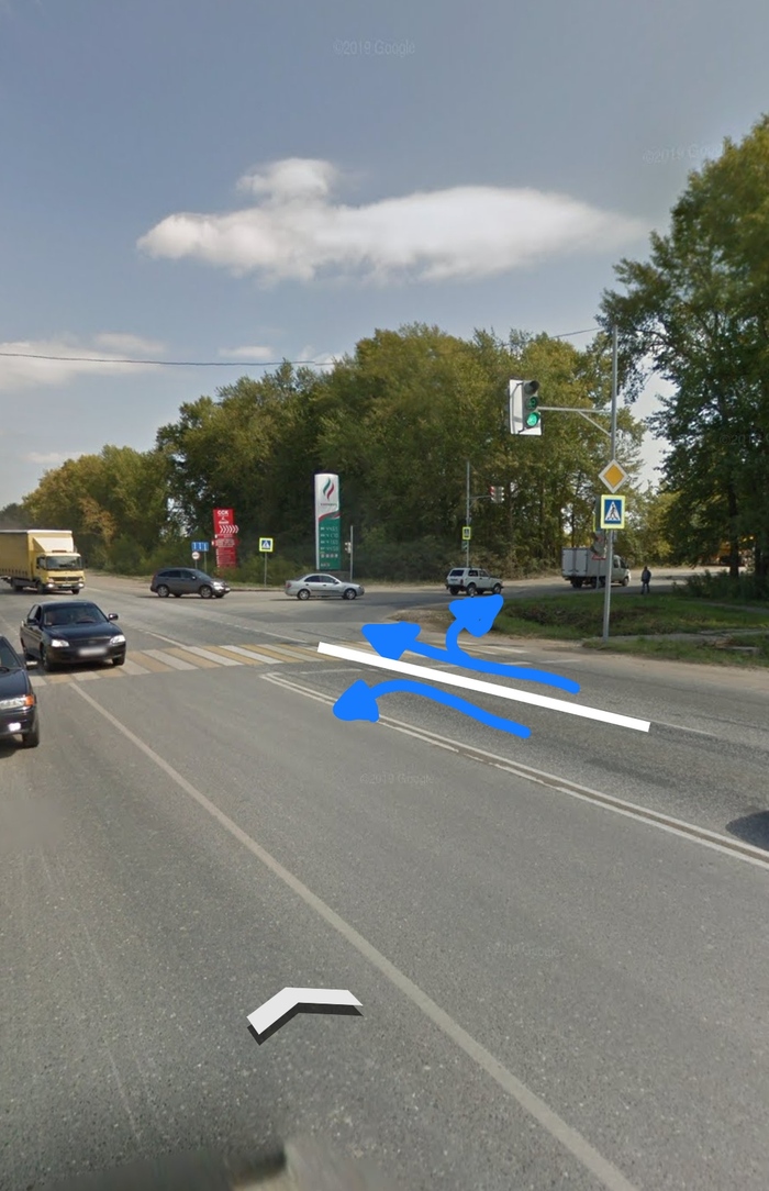 Перекрёсток в г. Чебоксары (поворот на сск). Повесили знаки направления движения полос со стороны Лапсар
