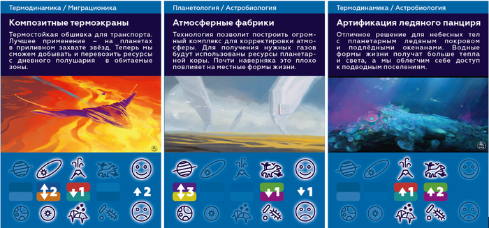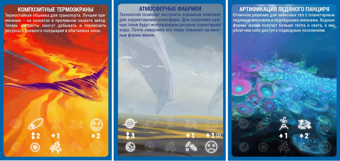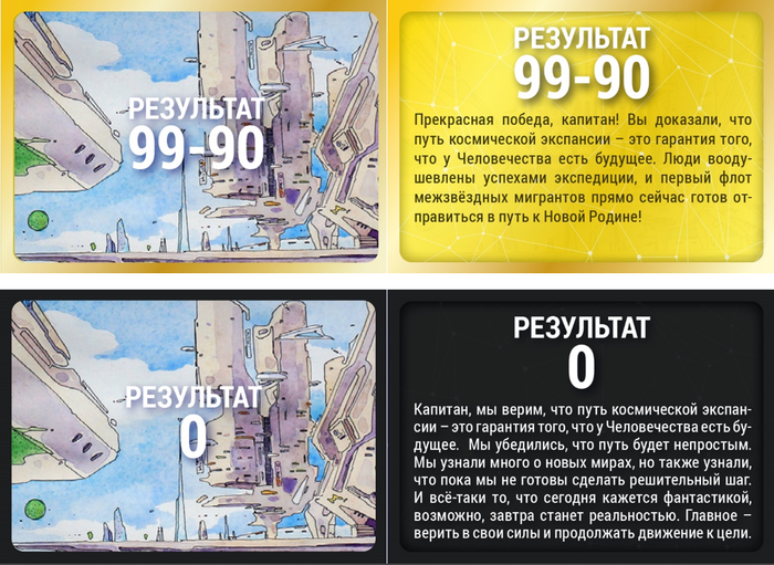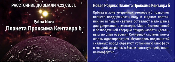 Карточки итогов игры – Patria Nova (будущее выбранных миров). На примере ближайшего к Земле мира у Проксимы Кентавра b.