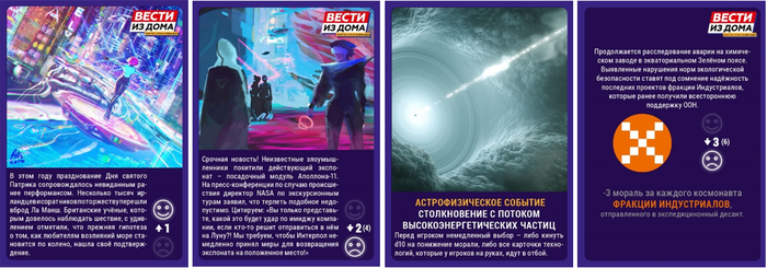 Дизайн карточек событий «Вести из дома» и «Астрофизические события»