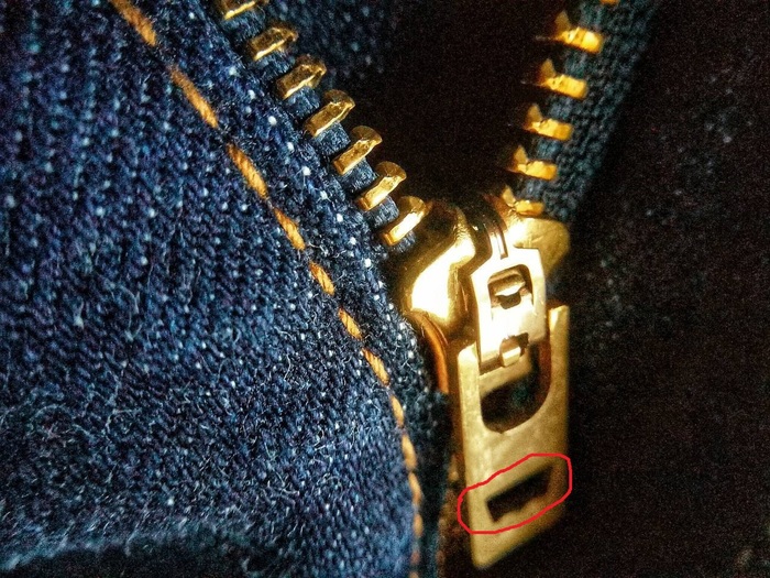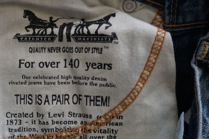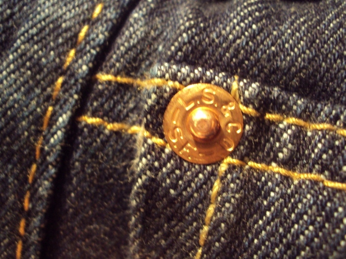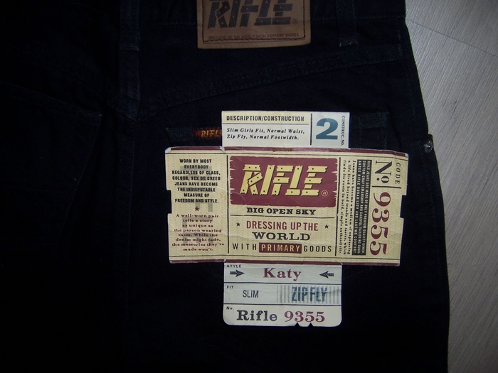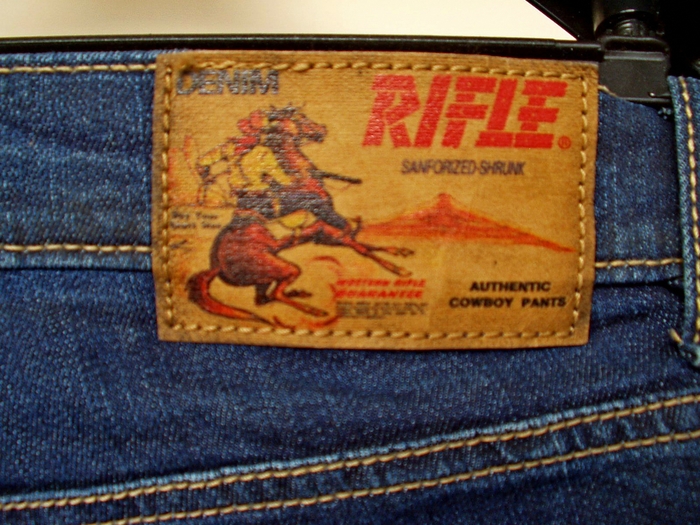 Достаточно большой интерес вызывали и лейблы, изготовленные из латуни и размещенные на обоих задних карманах. Завершающим элементом формирования всего великолепия выступал кожаный лейбл с тиснением и зафиксированные на карманах заклепки.