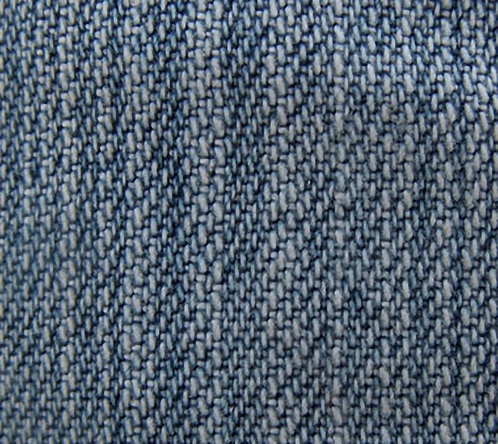 Узнать 100% деним просто: он создается путем переплетения двух или трех плотно скрученных нитей – окрашенной и неокрашенной, благодаря чему джинсы имеют неоднородный цвет