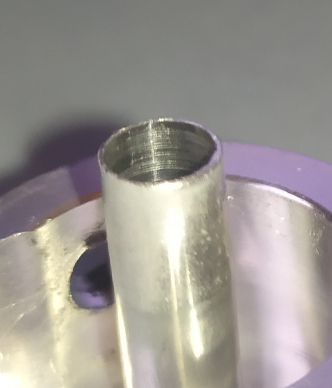 Также на штуцере головы цилиндра обнаружил вот такую потёртость (видно с левой стороны фото, справа поверхность почти зеркальная):