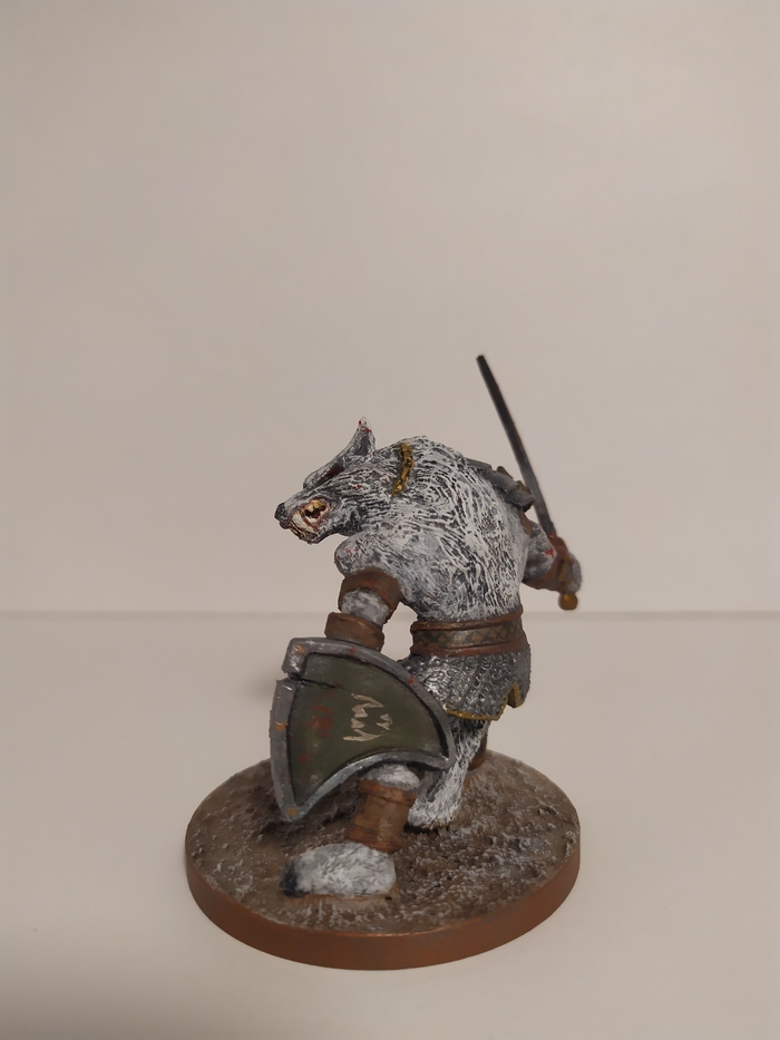 Все сразу пошло не по плану- волчара оказался не из приятного модельного пластика, а из отвратительной бурды, к которой толком не цеплялся ни один клей. В итоге кое-как зацепил хвост за заусенцы клей-гелем и запаял раскаленным скальпелем. Этим же раскаленным скальпелем в итоге пришлось убирать с фигурки облой, запаивать следы толкателей и выравнивать серому прикус- кривое литье в области пасти сделало бедолагу похожим то ли на ратлинга, то ли на хищного бобра. Вся эта развлекуха заняла два вечера. Ну теперь-то все быстро пойдет, волк же не танк- убеждал я себя.