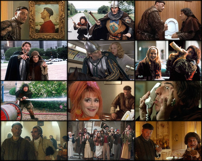 Я думаю, что многие из вас видели уйму фильмов и читали гору книг про так называемых "попаданцев": например, о том, как современный человек попадает в прошлое. Оке! А теперь тоже самое, только наоборот – средневековые рыцарь и его воровитый оруженосец перемещаются в наше время! Оке! Эти фильмы о приключениях двух диковатых мужланов, которые вынуждены столкнуться с современным миром, перевёрнутым для них с ног на голову, и со своими потомками, которые отчасти соответствуют им самим, унаследовав их лучшие или худшие черты характера. Ну, и стоит ли говорить о том, что это комедия – французская, а значит и юмор будет иногда весьма тонким и специфичным?