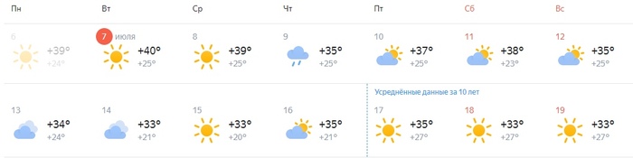 Прикладываю прогноз погоды на ближайшие дни для Астрахани.