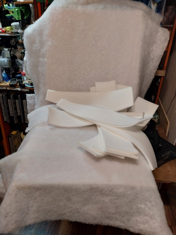 Самое неприятное во всем этом деле - потрошение кресла, снятие обивки. Старый поролон сбивается в одну тонкую, неприятную, клейкую массу. И частично до этого ссыхается и высыпается. Прелестно, не правда ли?