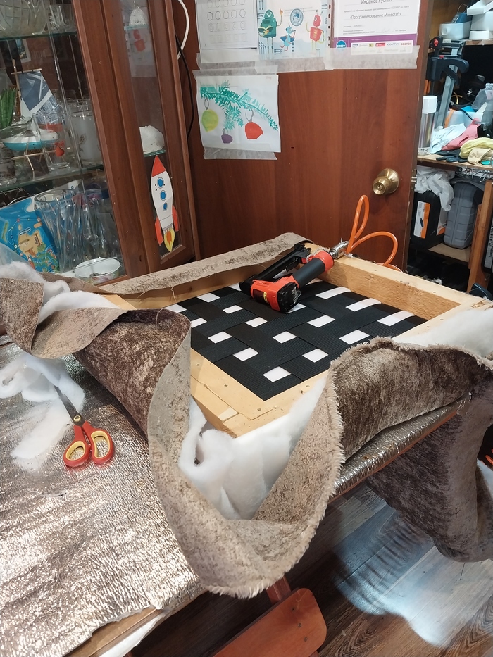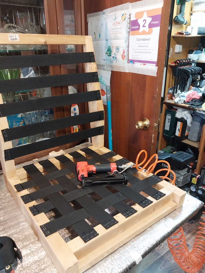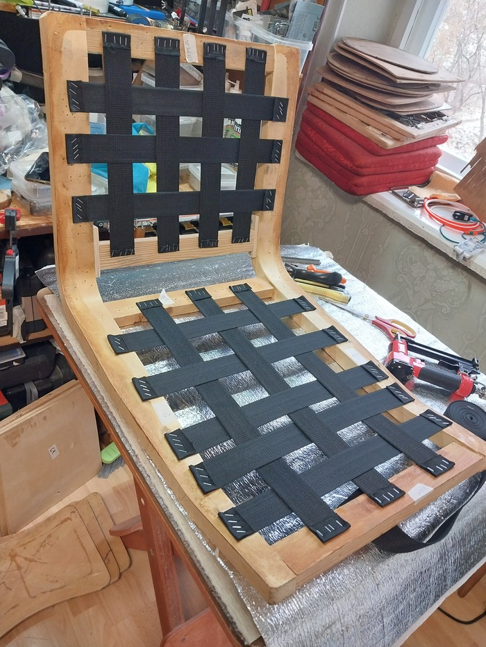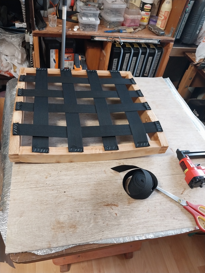 Дальше было весело: прибить к сиденьям подкладку, затем ленты и поверх еще одну подкладку