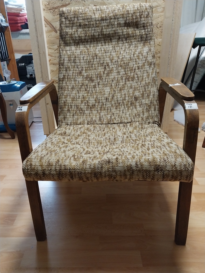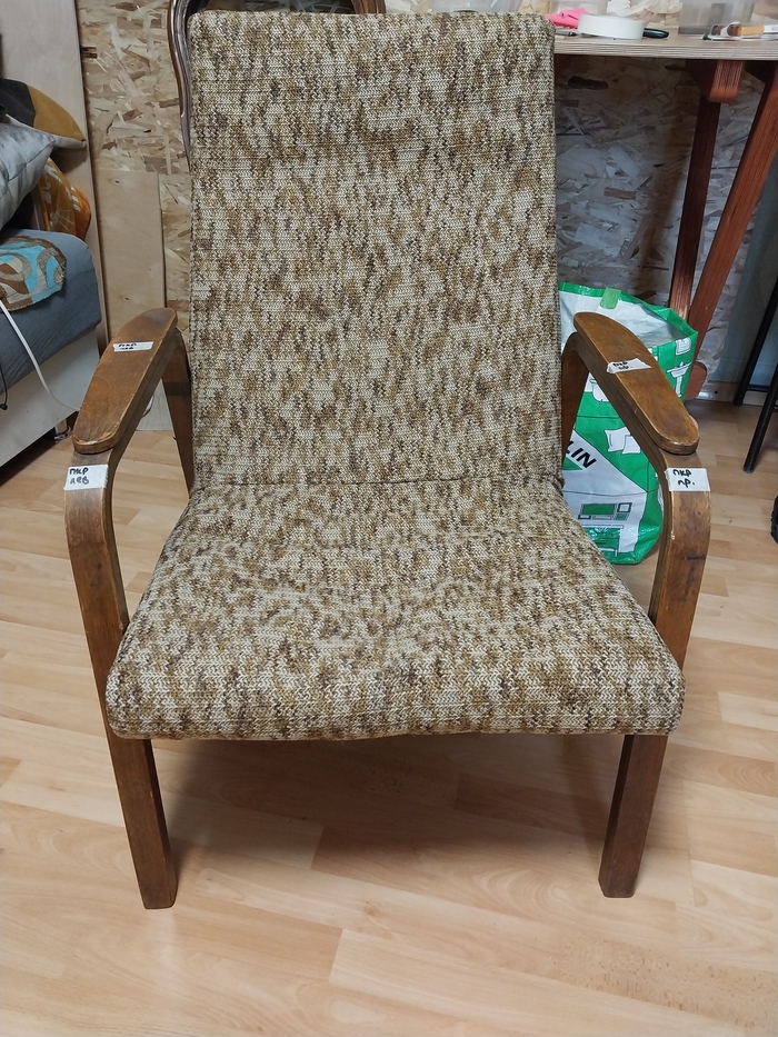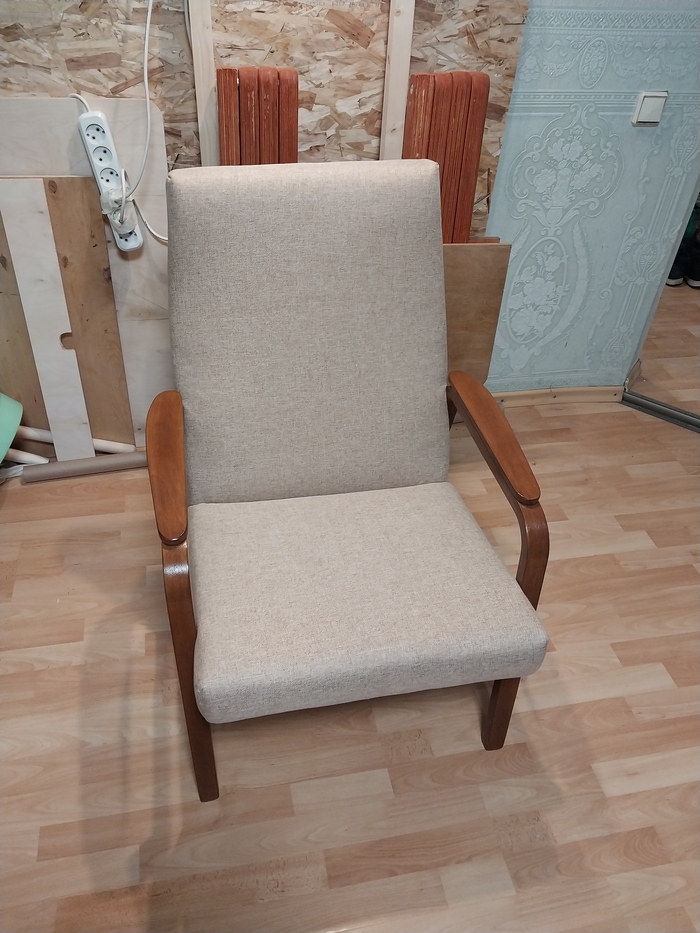 Побывало у нас в работе Пермское кресло: кто не в курсе, оно изготавливалось на Пермской Мебельной Фабрике, если не ошибаюсь, где-то в районе Данщина. Особо ничем не отличается от других подобных изделий кроме... цельного основания спинка-сиденье.