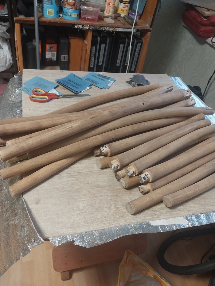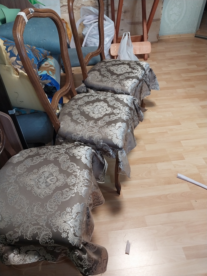 Стулья неплохие, крепкие, тяжеловатые. Древесина жесткая, но иногда колкая. Заказчик пожелал поменять обивку и переклеить каркасы стульев.