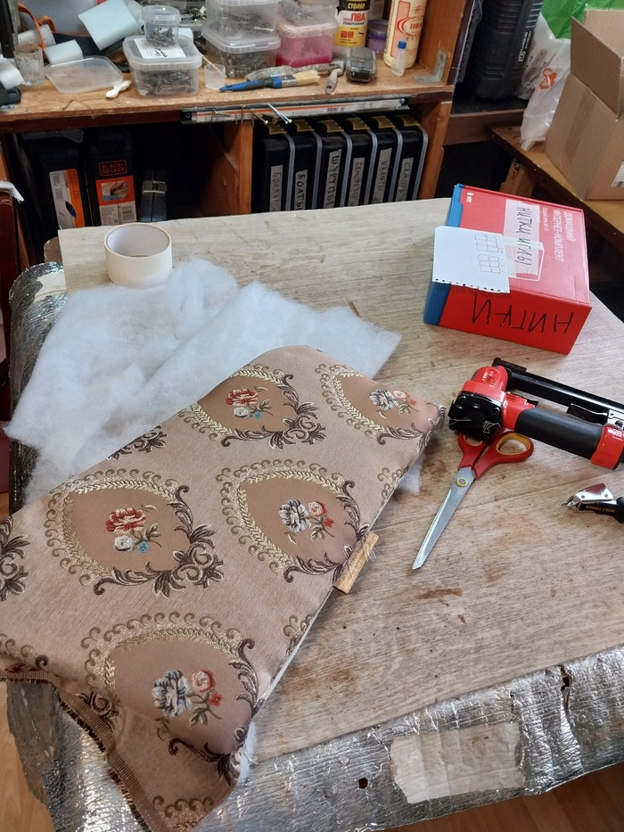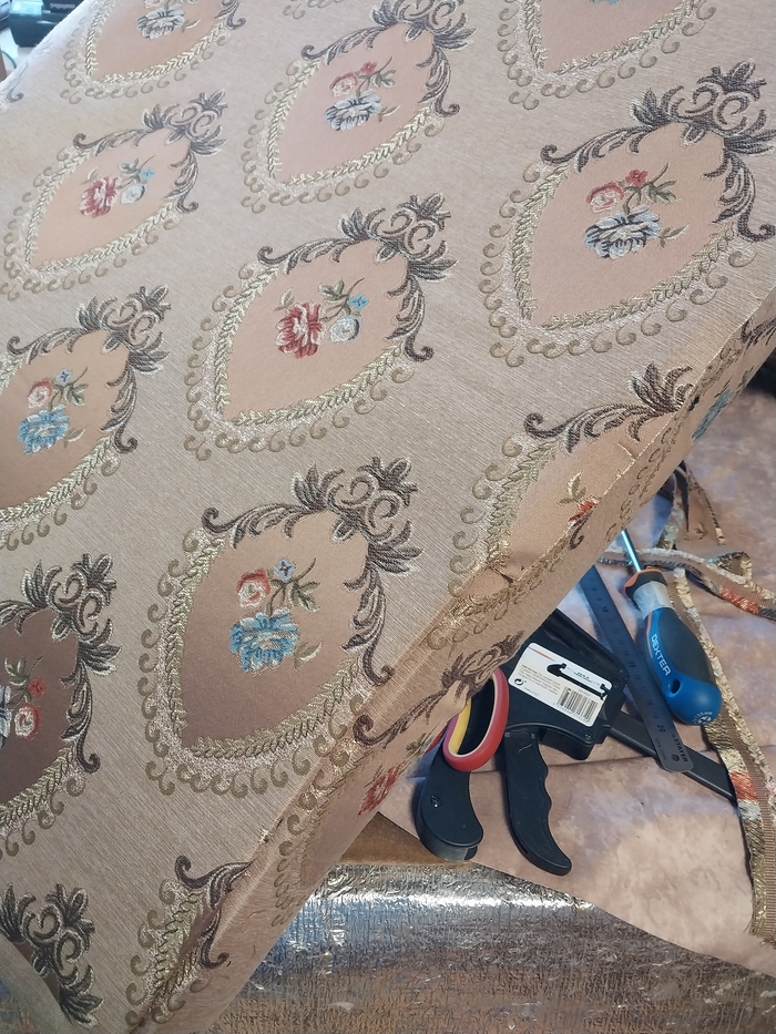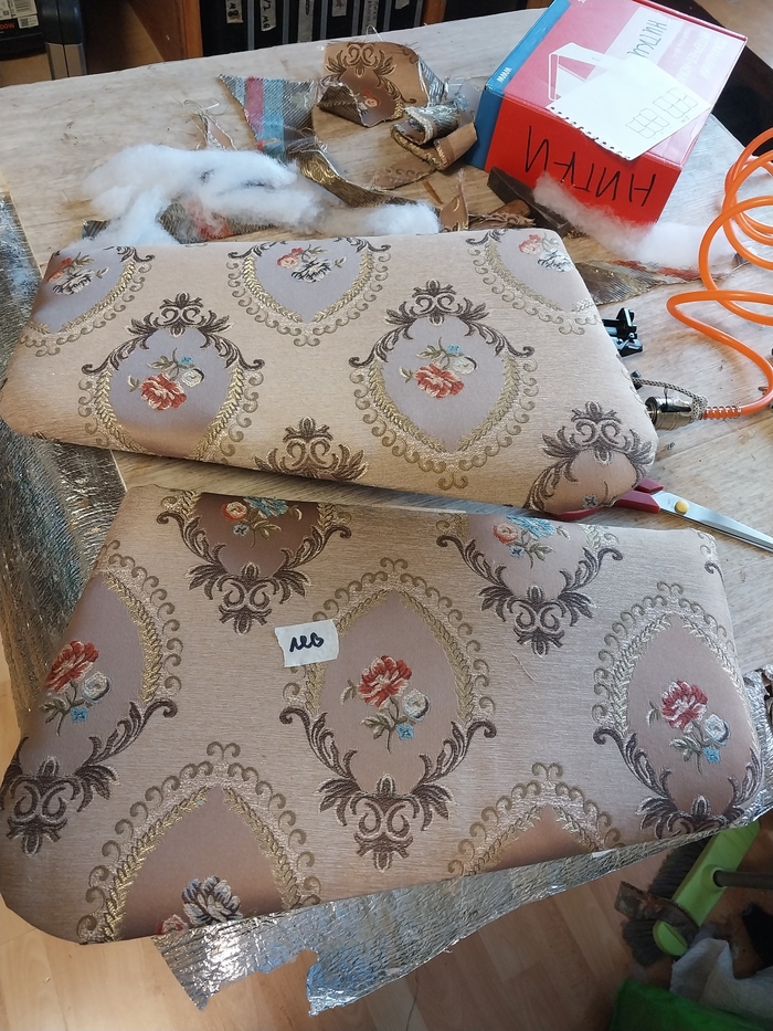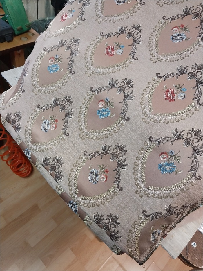 И-и... самое интересное - подготовка обивки и муторное выполнение, бесконечное, скрупулезное, требующее повышенного внимания. Ох, как же мне не нравится подгонка рисунка на обивке!