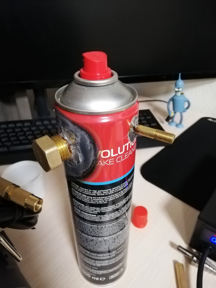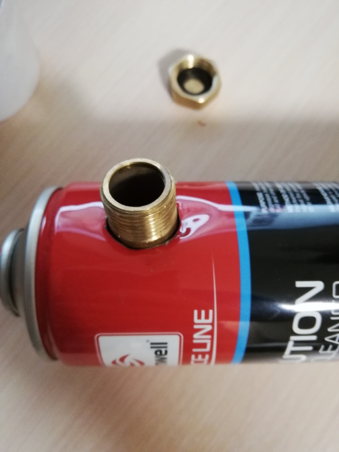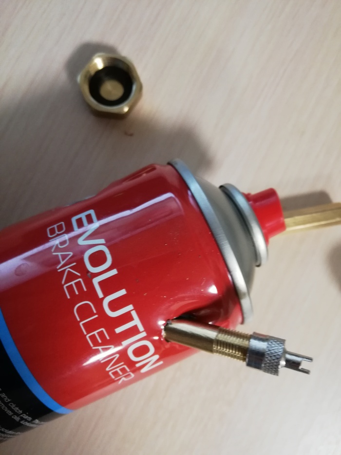 Всем доброго времени года! Пришла весна и настала пора обслуживать автомобиль своими ручками, да и не только автомобиль. Данная идея пришла мне в голову очень давно и это уже не первый девайс благополучно слепленный на коленях. Первый на радостях отжал сосед по гаражу ну и попутного ветра ему - не жалко! Вся суть состоит в том, чтобы использовать одноразовый баллон повторно, для этого собрался таков набор из 4-х предметов: